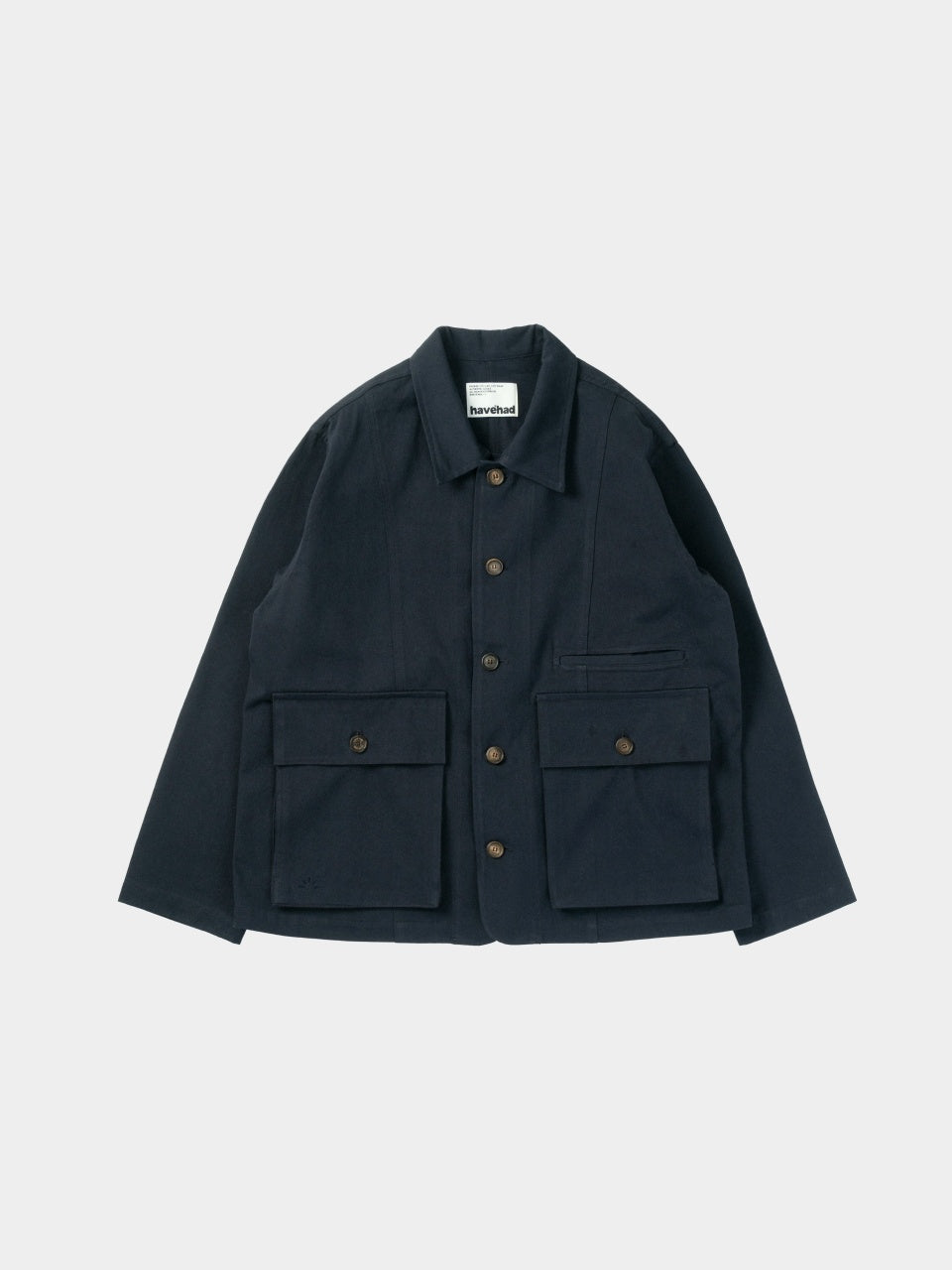 The washed high-density fabric offers a soft touch and durability, maintaining its shape with minimal distortion even after frequent washes. The tone-on-tone chain stitch logo on the chest by Havehad adds a vintage charm, and the inside is finished with taping for a neat and sophisticated appearance.