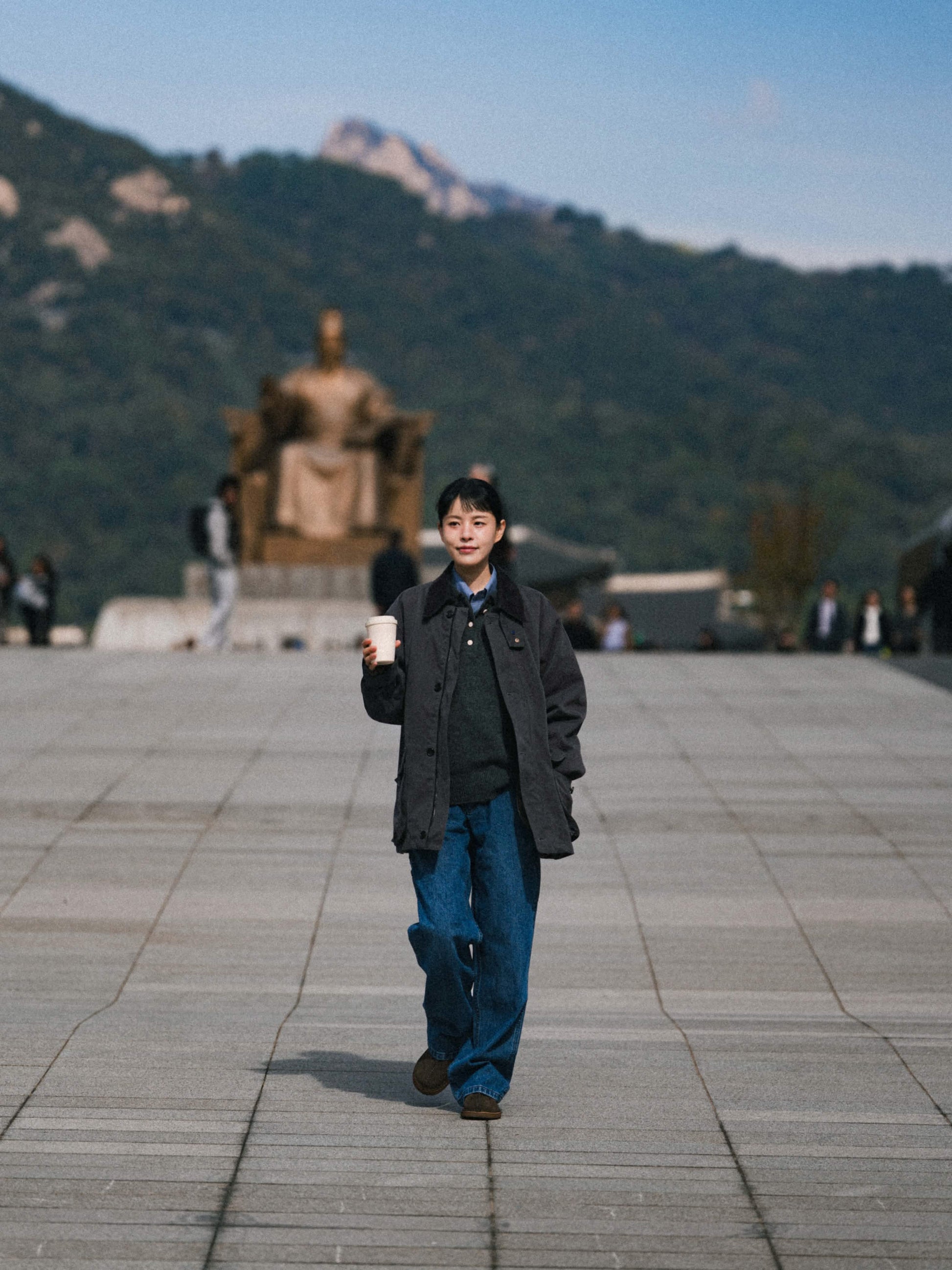 The corduroy collar, warmth strap, and the interior check lining add depth to the jacket. Outwardly neat but revealing details through movement, it creates a natural personality.