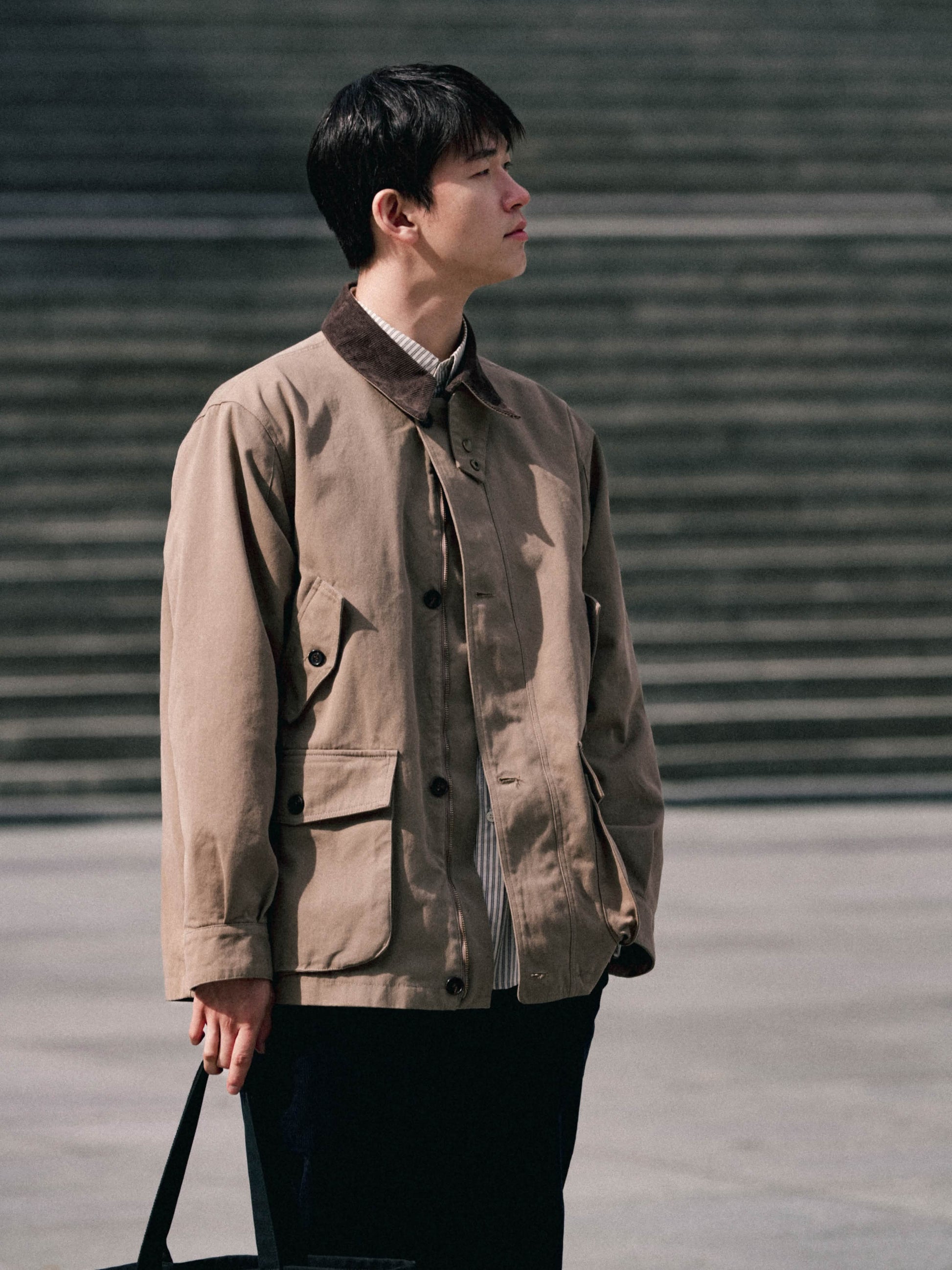 The 10-count canvas fabric holds the shape firmly, deepening in texture and natural creases with wear. The design pattern has been carefully adjusted to maintain ease of movement despite its substantial weight. The 65/35 cotton-nylon blend adds water resistance, making it easy to wear in everyday weather changes.