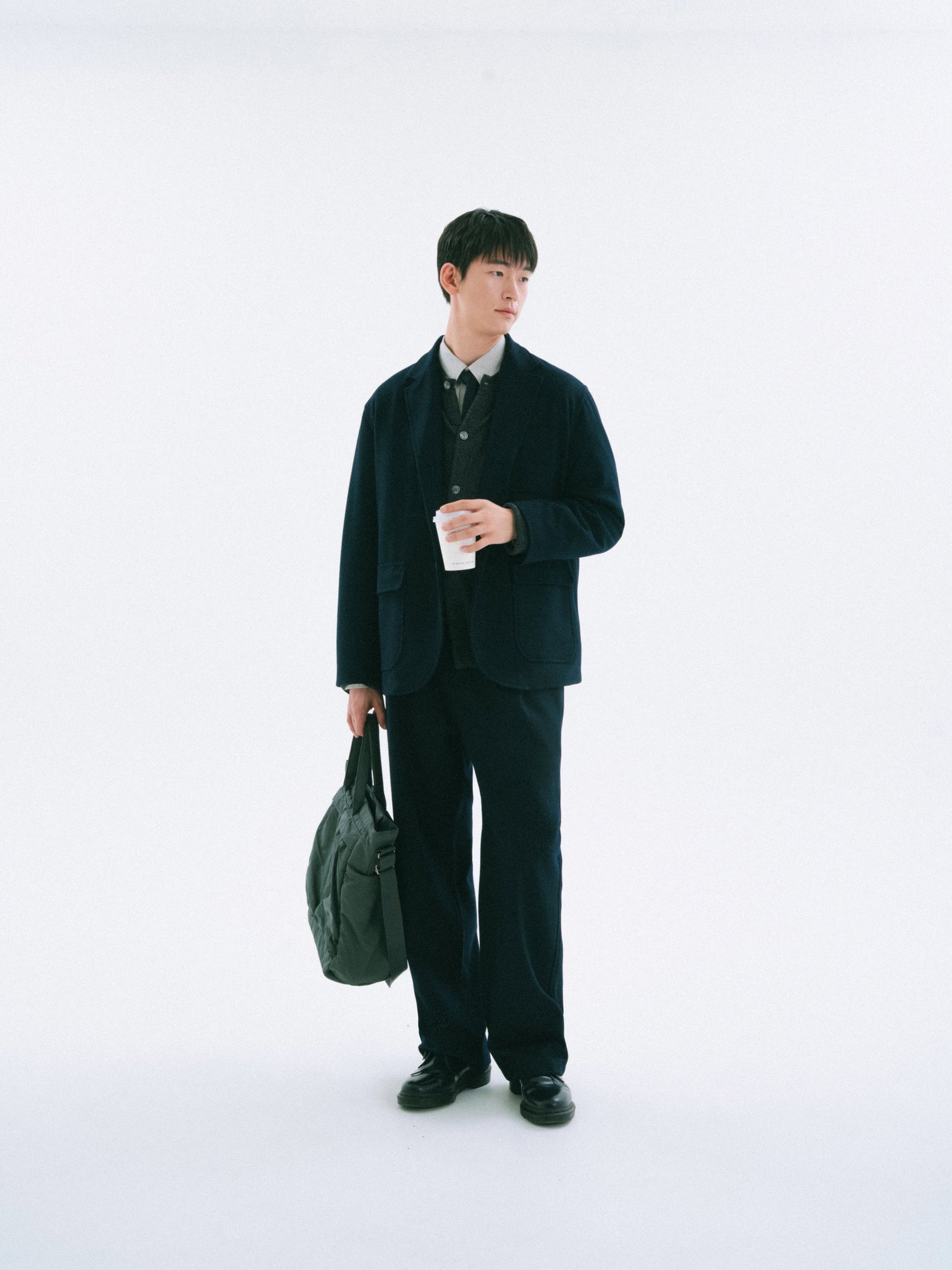 Finding comfort in neatness, these wool pants feature pin-tuck trousers with a balanced silhouette and secure fit. The semi-wide fit flatters various body types, with the double-tuck detail creating a relaxed yet refined look. The soft texture and excellent durability of the wool blend fabric maintain their shape even with long wear, making them ideal for both casual and business outfits.