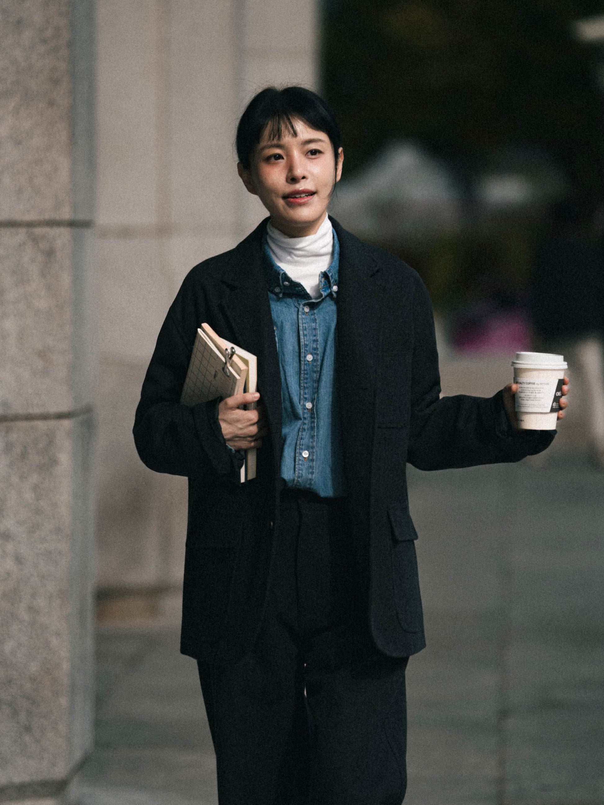 The double-tuck detail provides a stable line in the center. The semi-wide fit moves naturally and complements diverse body shapes without any constraint.