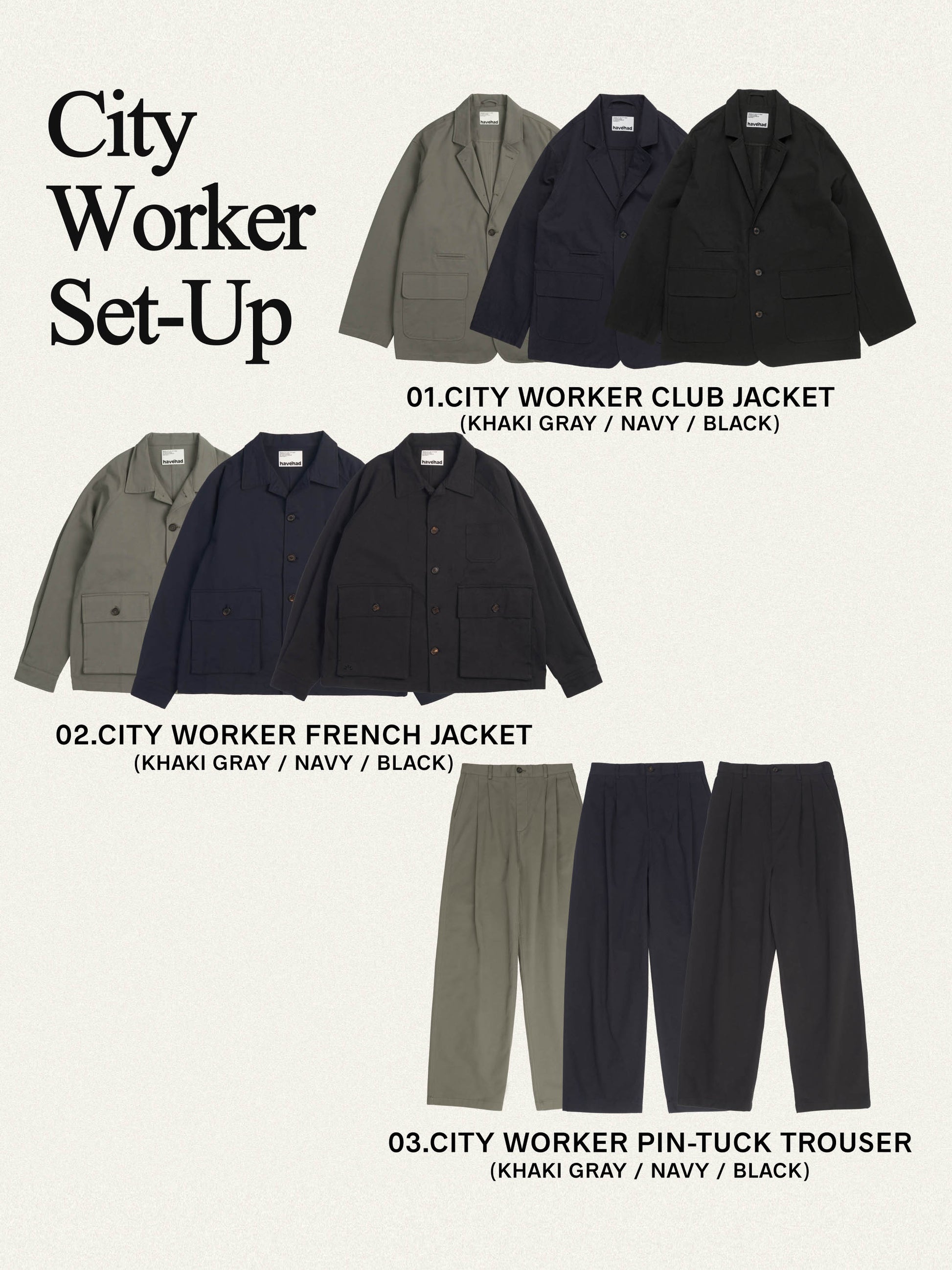 City Worker Club Jacket offers a semi-oversized silhouette and lapel detail, providing a casual yet neat look. Made with high-density fabric and meticulous finishing, it pairs harmoniously with setup pants, making it suitable for both business and casual settings.