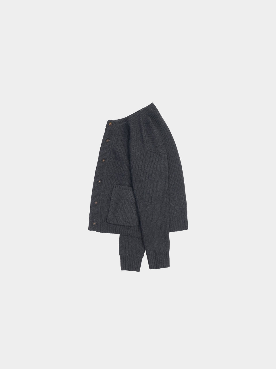 Crafted from a wool blend material, this round-neck cardigan stands out with its textured knit details and soft feel. The gently draping round neckline and relaxed silhouette offer versatility, making it suitable for solo wear or layered styles. The unique elasticity of wool combined with sturdy low-gauge knitting ensures durability and practicality, making it a go-to piece throughout the seasonal boundaries.