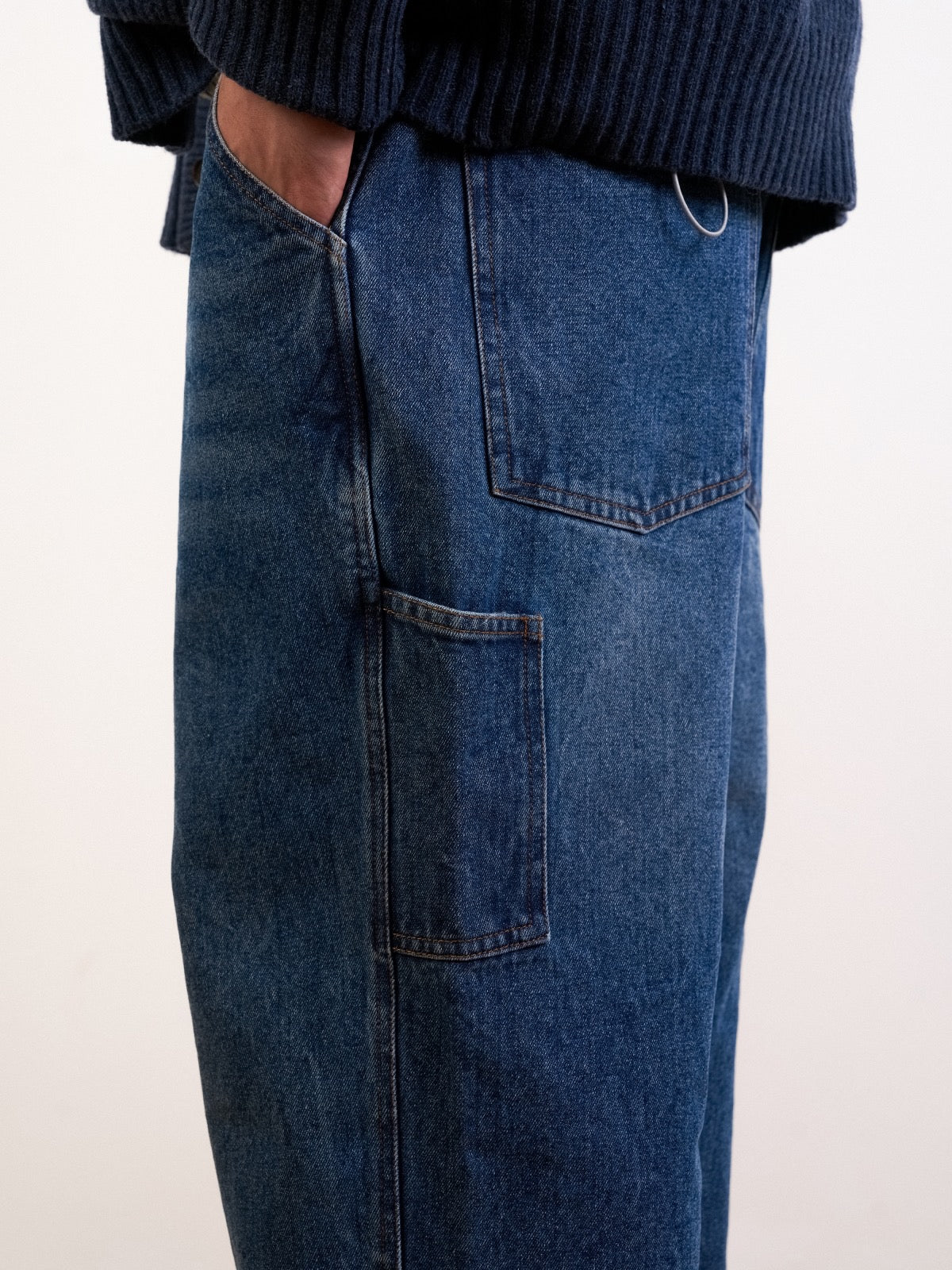 Tool pockets and hammer loop details, symbolic of carpenter pants, are reinterpreted with a contemporary flair for a unique touch. The pocket details along the side seams not only expand storage capacity but also add a stylish appeal.