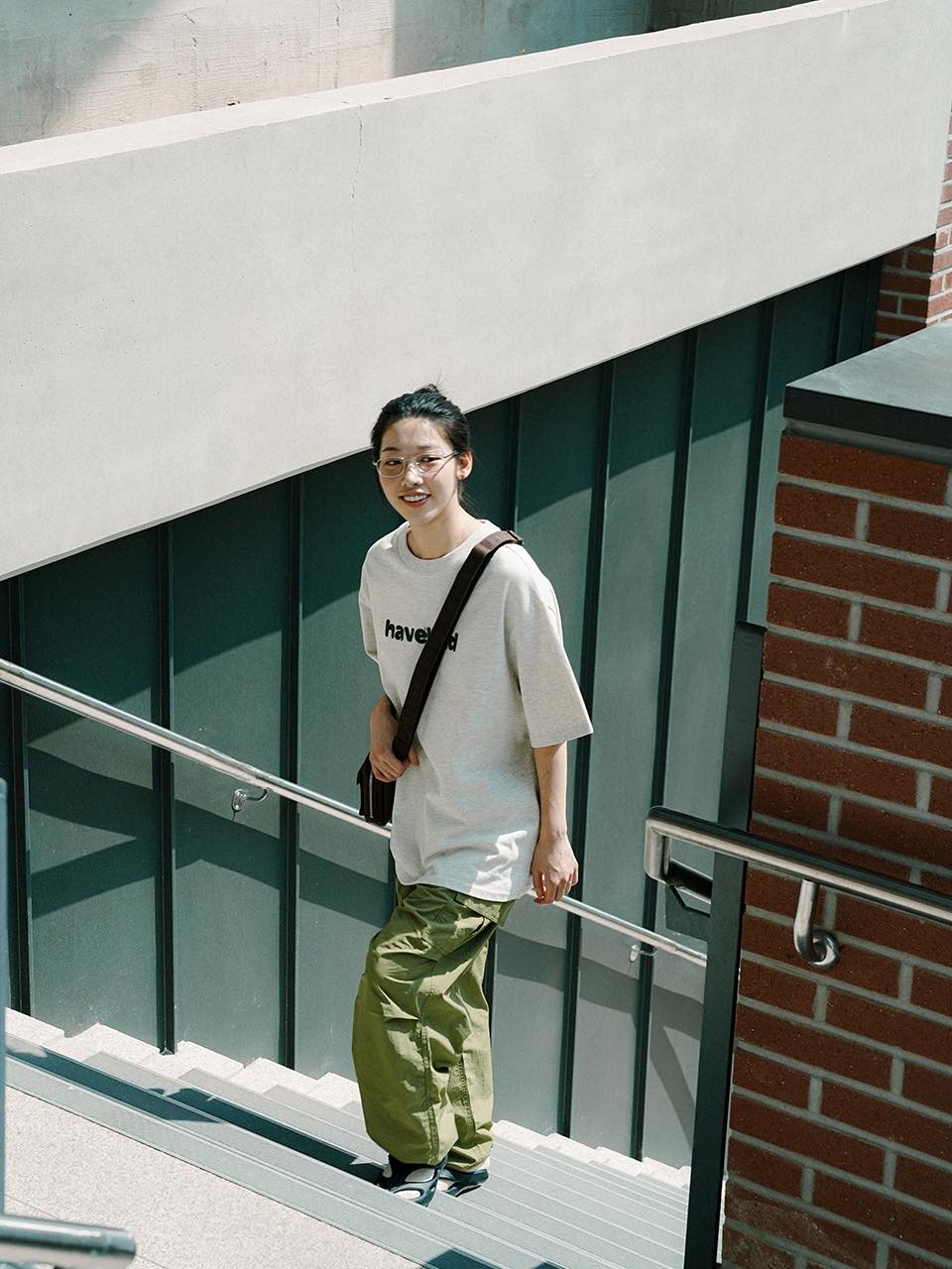 "Before work, stopping by the local bakery for a take-out coffee. A lightweight tee and these pants are all you need. Tighten the hems for a sleek look or loosen them for a more relaxed vibe.
