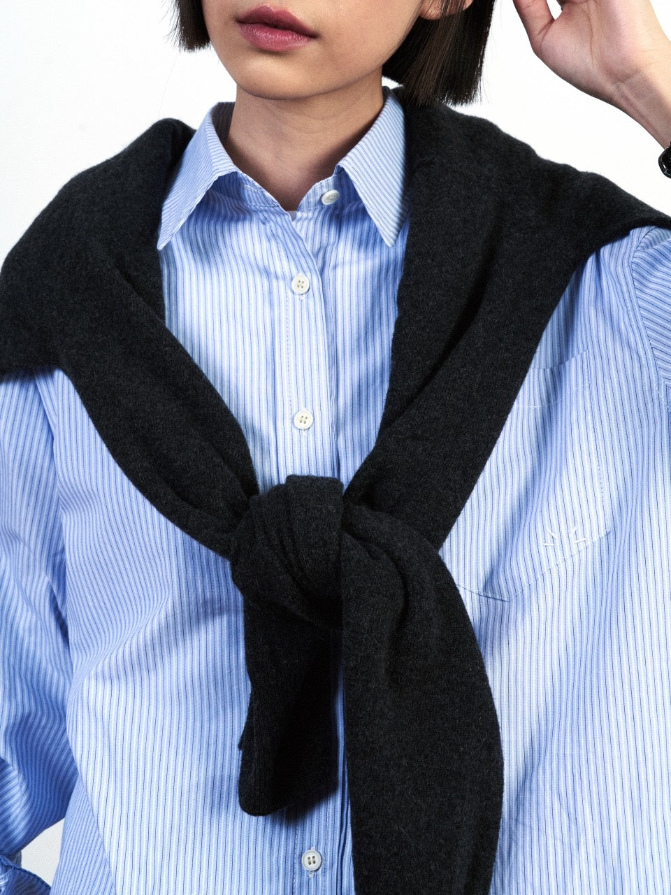 The moderately cut round neck gently wraps around the neckline, finished sturdily for long-lasting wear without stretching.