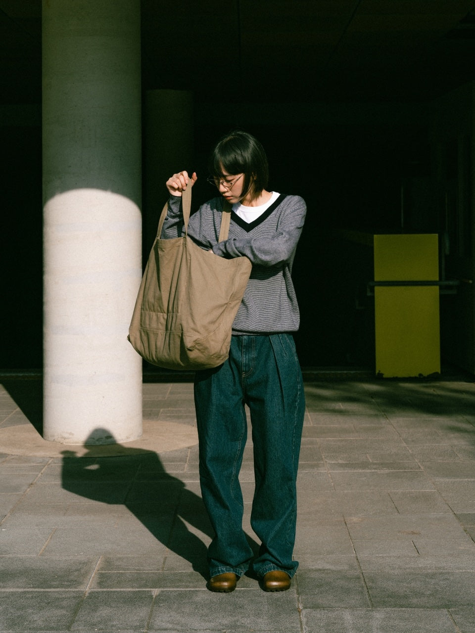 These pants feature a loose straight fit with deep pintucks. The wide silhouette offers comfort for active days, and the robust 10 oz premium denim fabric ensures stable wear throughout all seasons.