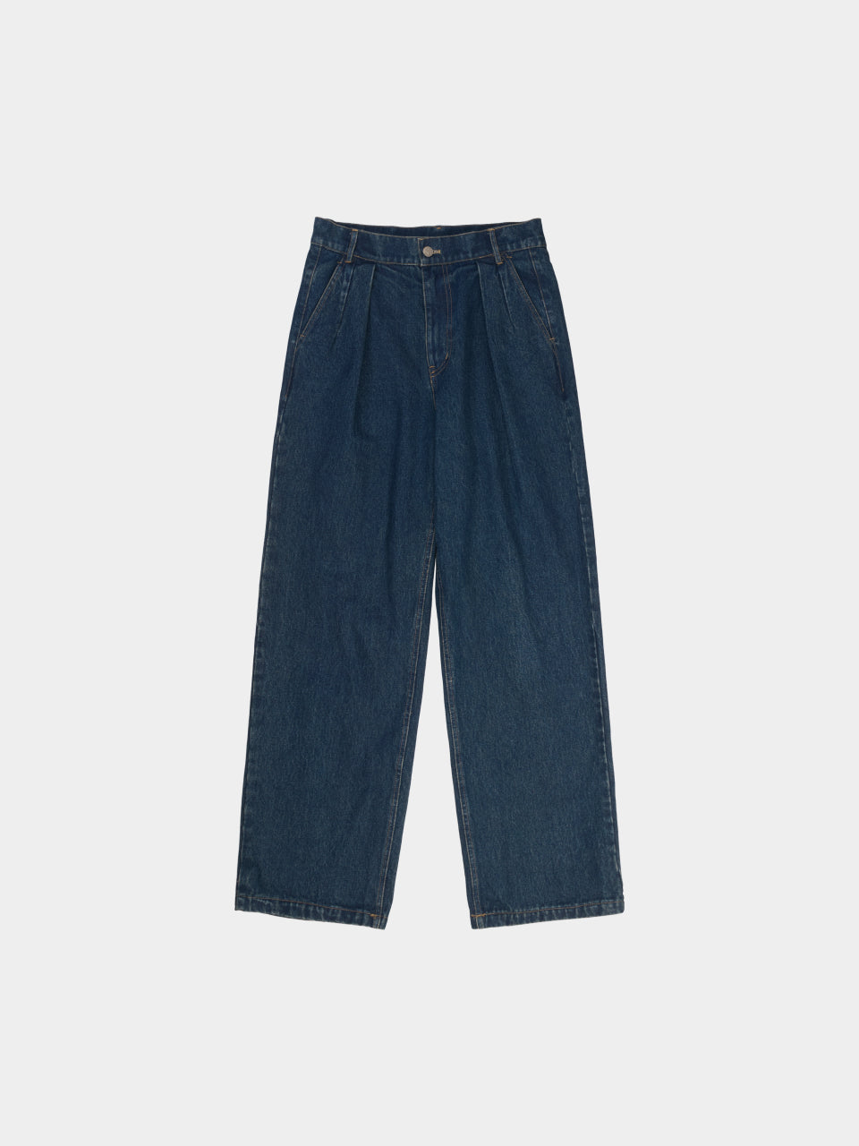 Loose Fit Pin-tuck Denim Pants (Deep Indigo)