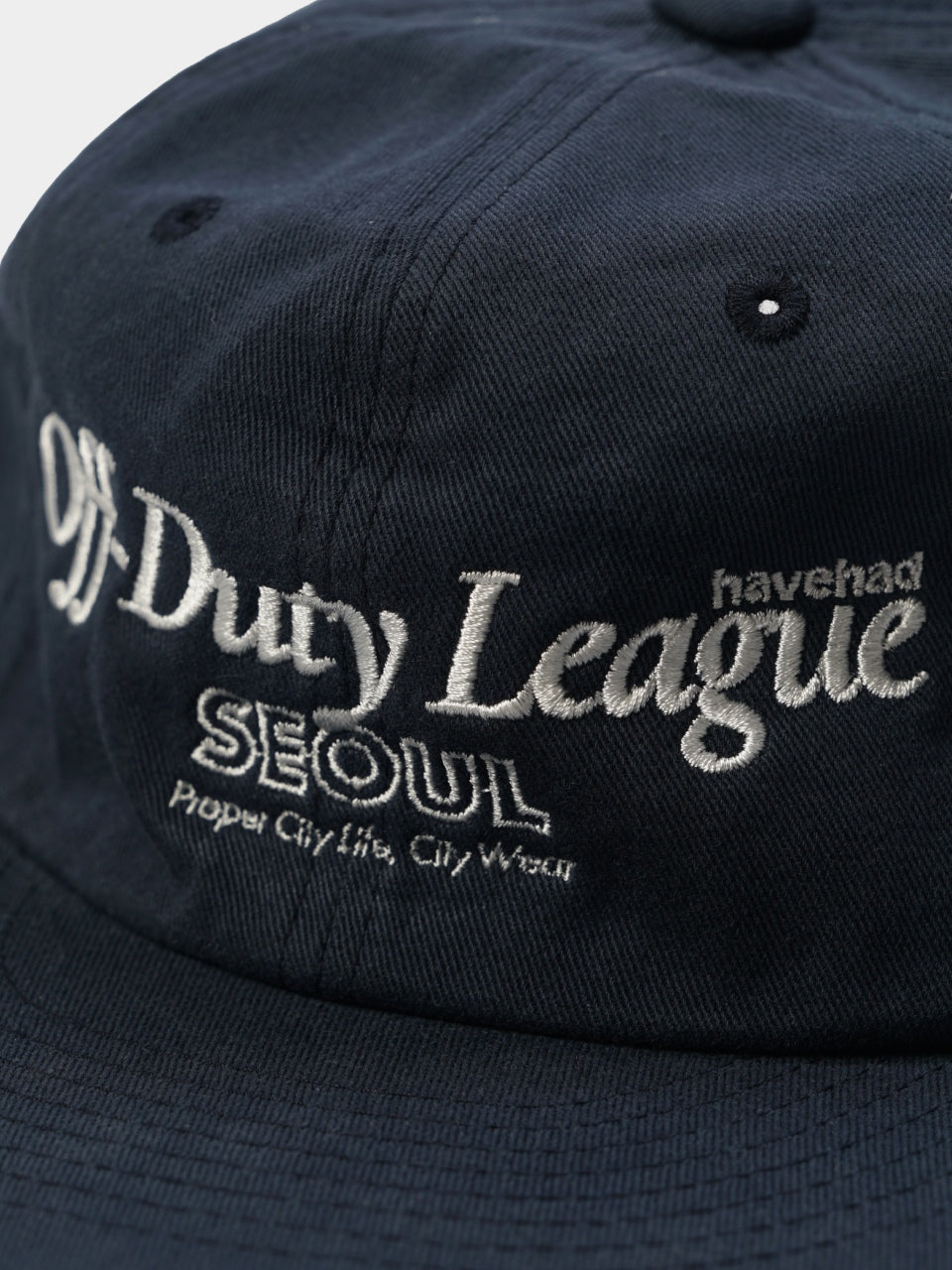 The OFF-DUTY LEAGUE collection logo is embroidered on the front.