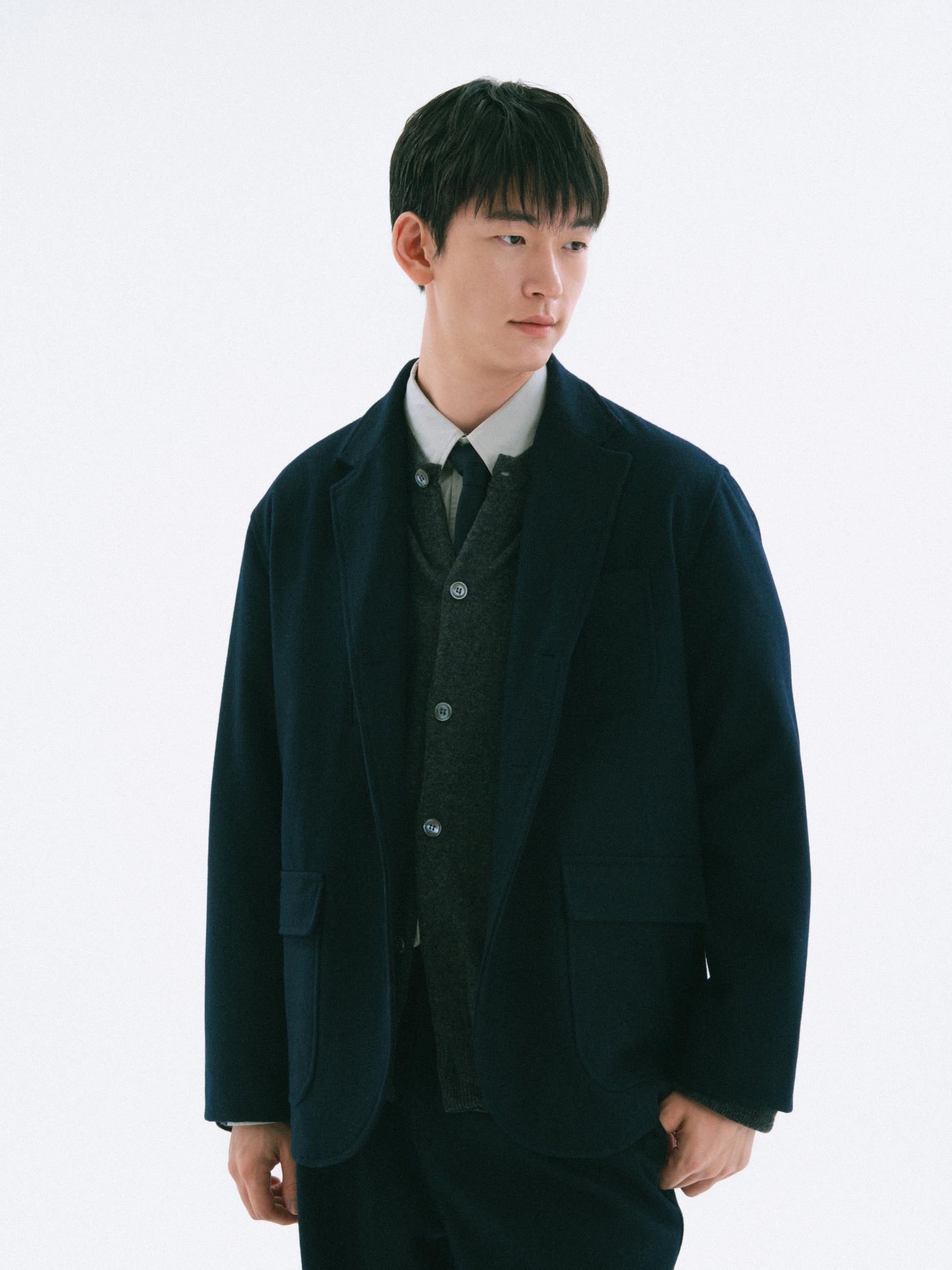 The balance of the lapel and buttons completes a clean look. The natural texture of wool-blend fabric connects formal occasions and everyday scenes seamlessly.