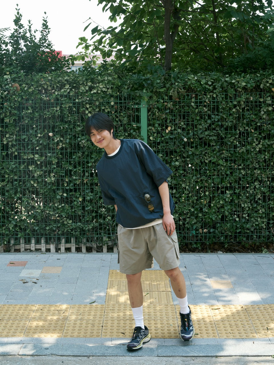 "On a weekend when the midday temperature rises quickly, a day to meet friends at the park. You can just wear these cargo shorts with a t-shirt, and your hands stay free.