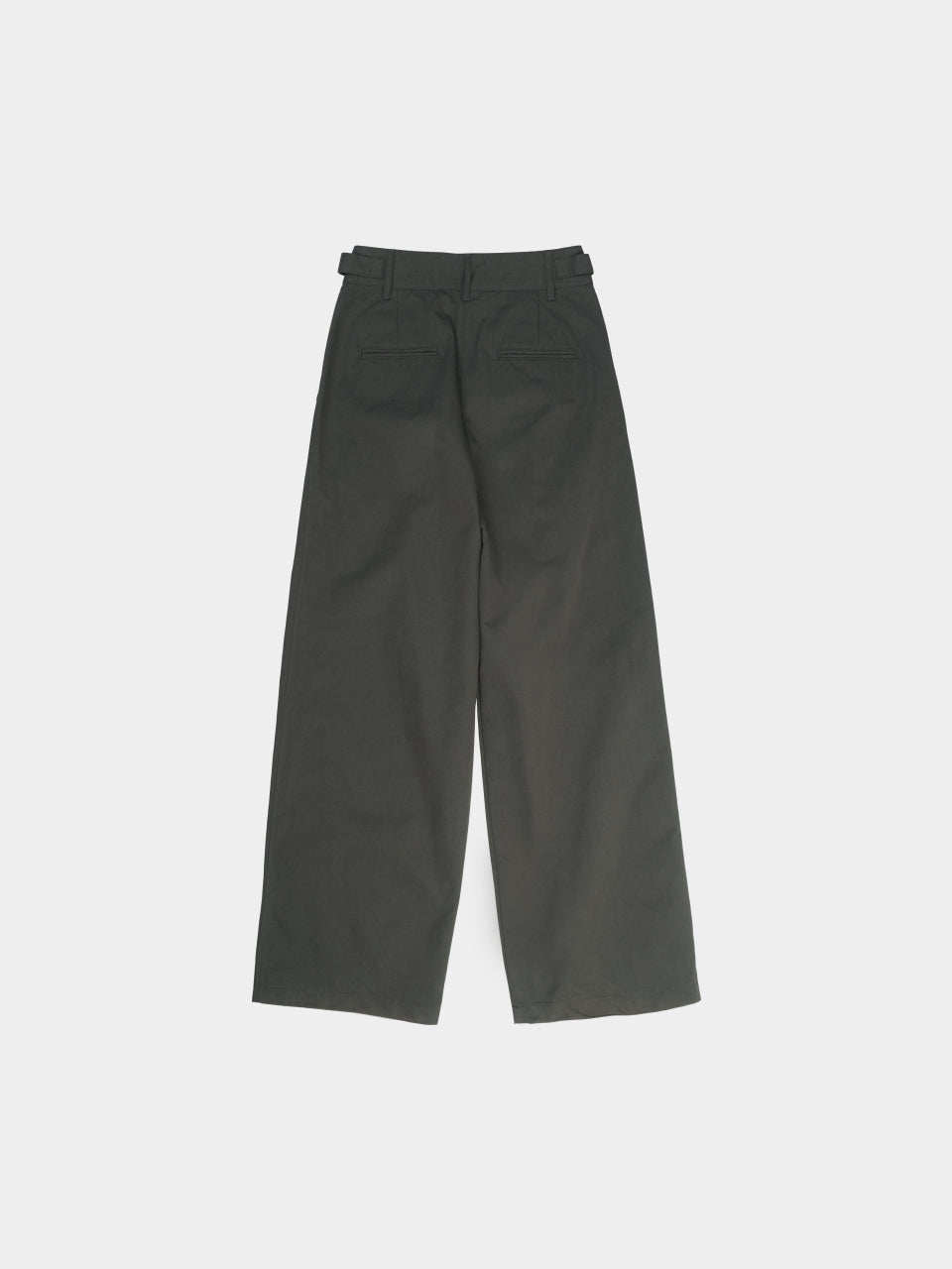 These pants have a semi-loose fit silhouette that falls neatly straight. The adjustable straps on both sides of the waist allow you to fine-tune the size to your shape, enabling you to wear them without the need for a separate belt.