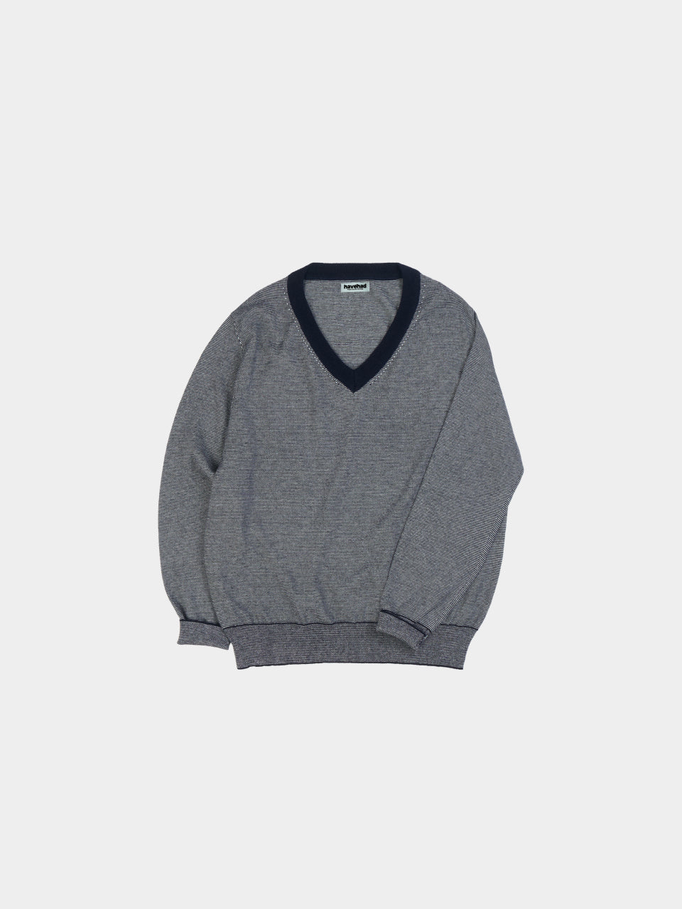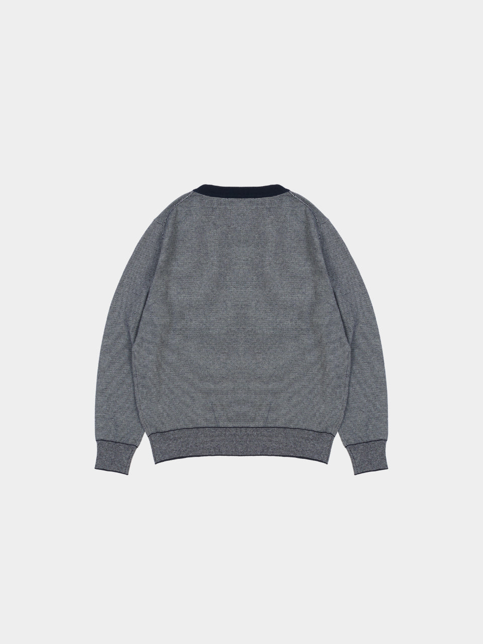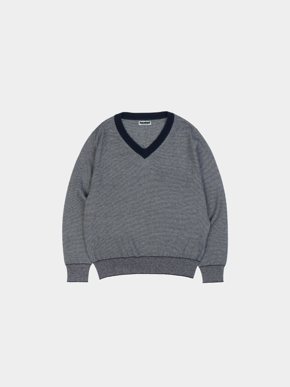 This knit combines a suitable depth V-neck and a relaxed silhouette with a subtle pinstripe pattern for a classic yet unique look.