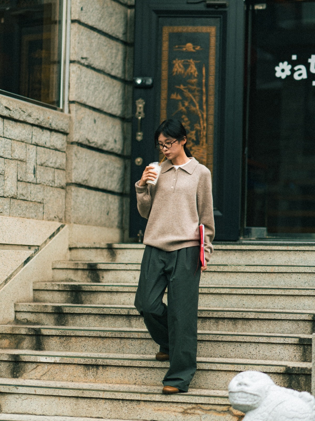 While retaining the classic charm of a collared knit, the design is balanced for easy daily wear.