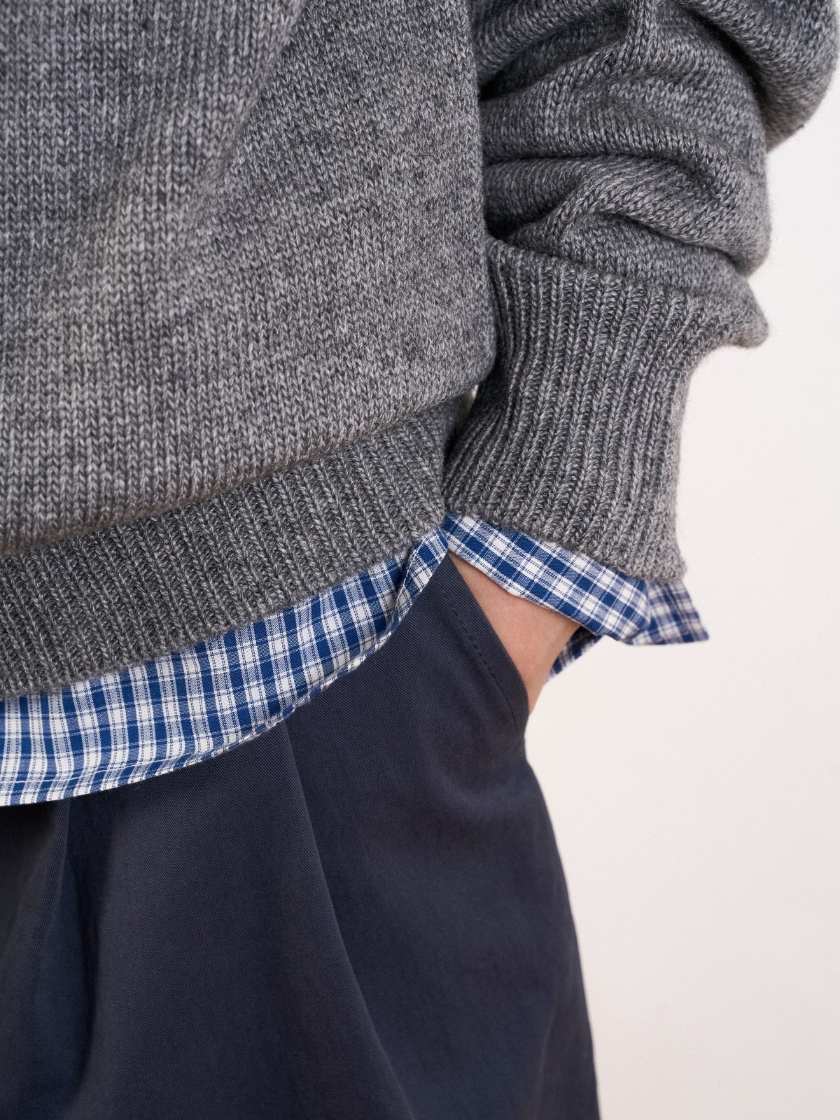 Crafted with a blend of yak and wool, this crewneck knit is all about the basics but with enduring necklines, a relaxed fit, and naturally draping raglan shoulders for a distinctive charm. It's soft enough to touch bare skin, offering warmth that transcends seasons. Wear it alone or layer it with a shirt or T-shirt for a versatile look.