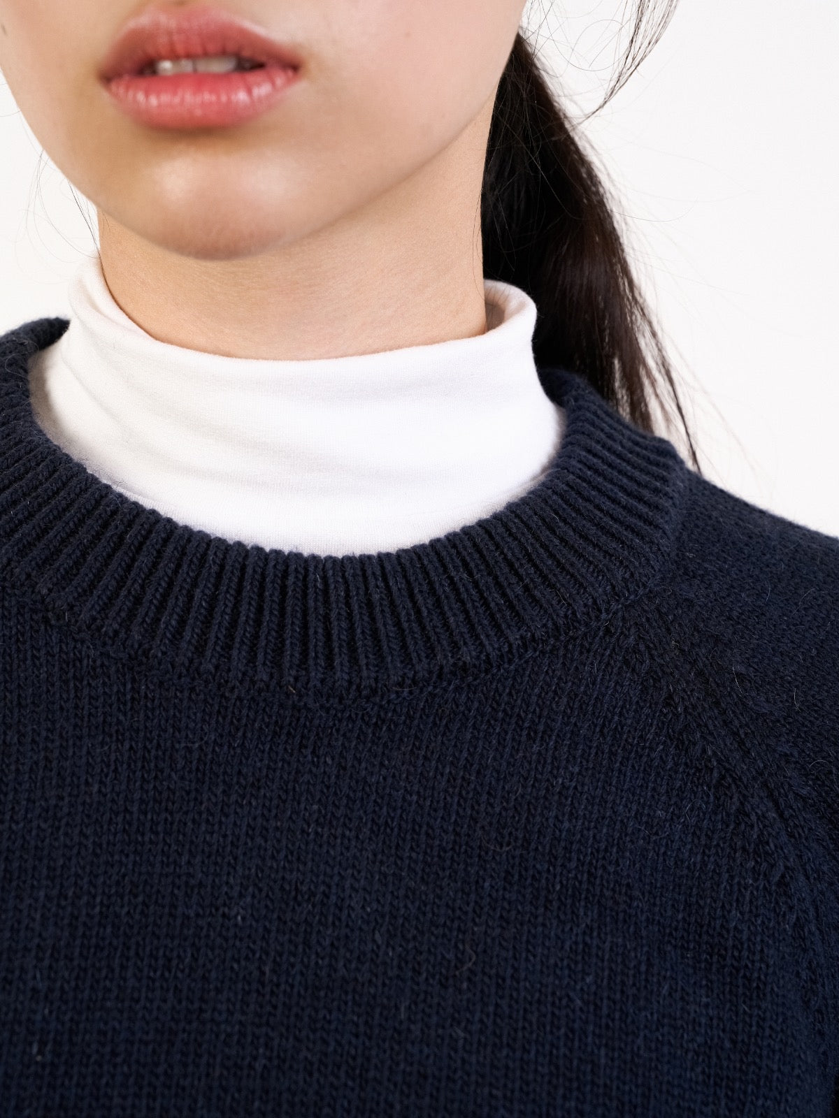 Crafted with a blend of yak and wool, this crewneck knit is all about the basics but with enduring necklines, a relaxed fit, and naturally draping raglan shoulders for a distinctive charm. It's soft enough to touch bare skin, offering warmth that transcends seasons. Wear it alone or layer it with a shirt or T-shirt for a versatile look.